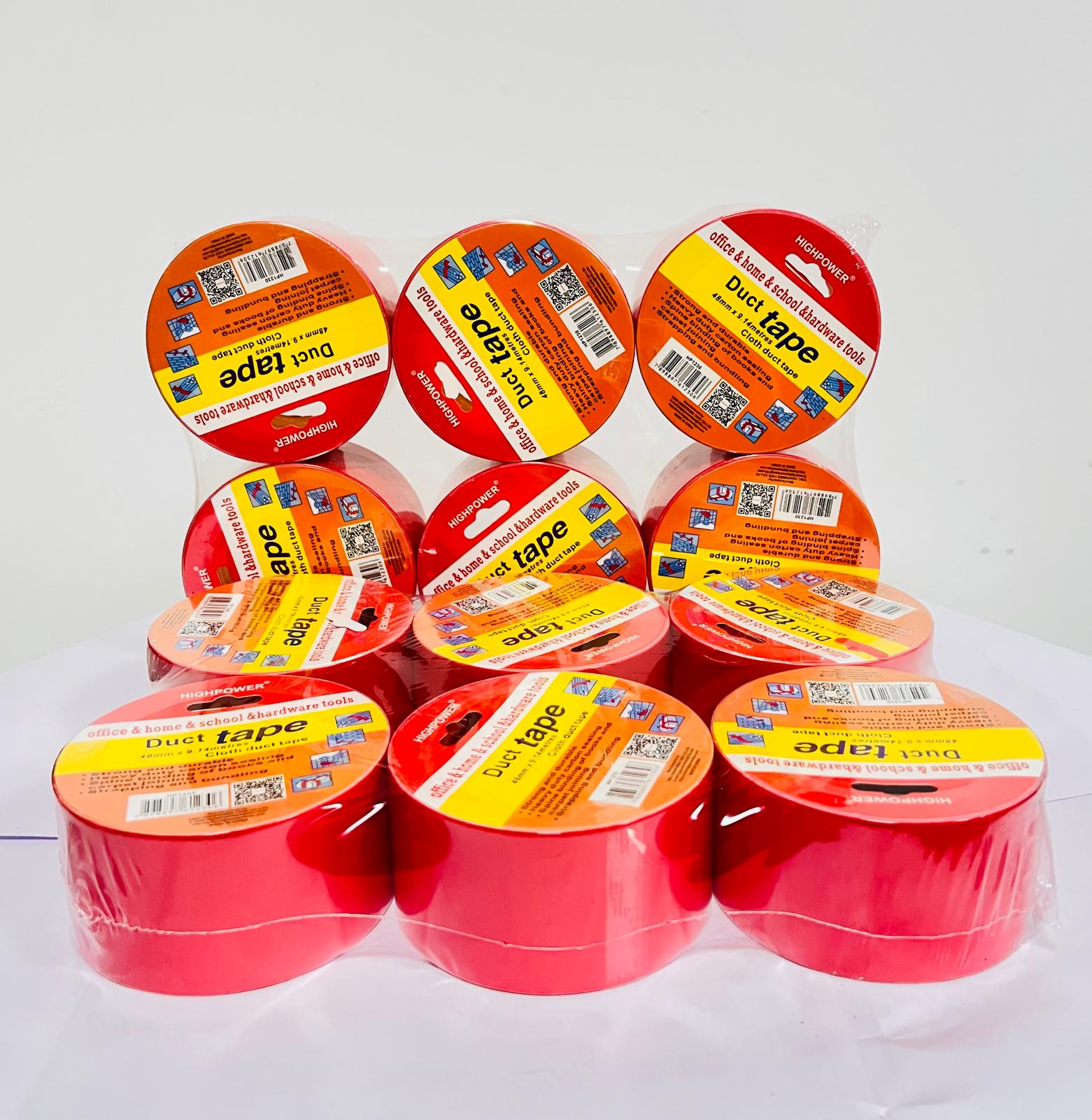 Red duct tape, measuring 48mm in width and 9.1 meters in length, is a versatile, multi-purpose, and heavy-duty adhesive tape designed for a wide variety of tasks. It combines a strong adhesive with a durable backing, making it suitable for both general household use and more demanding applications.
