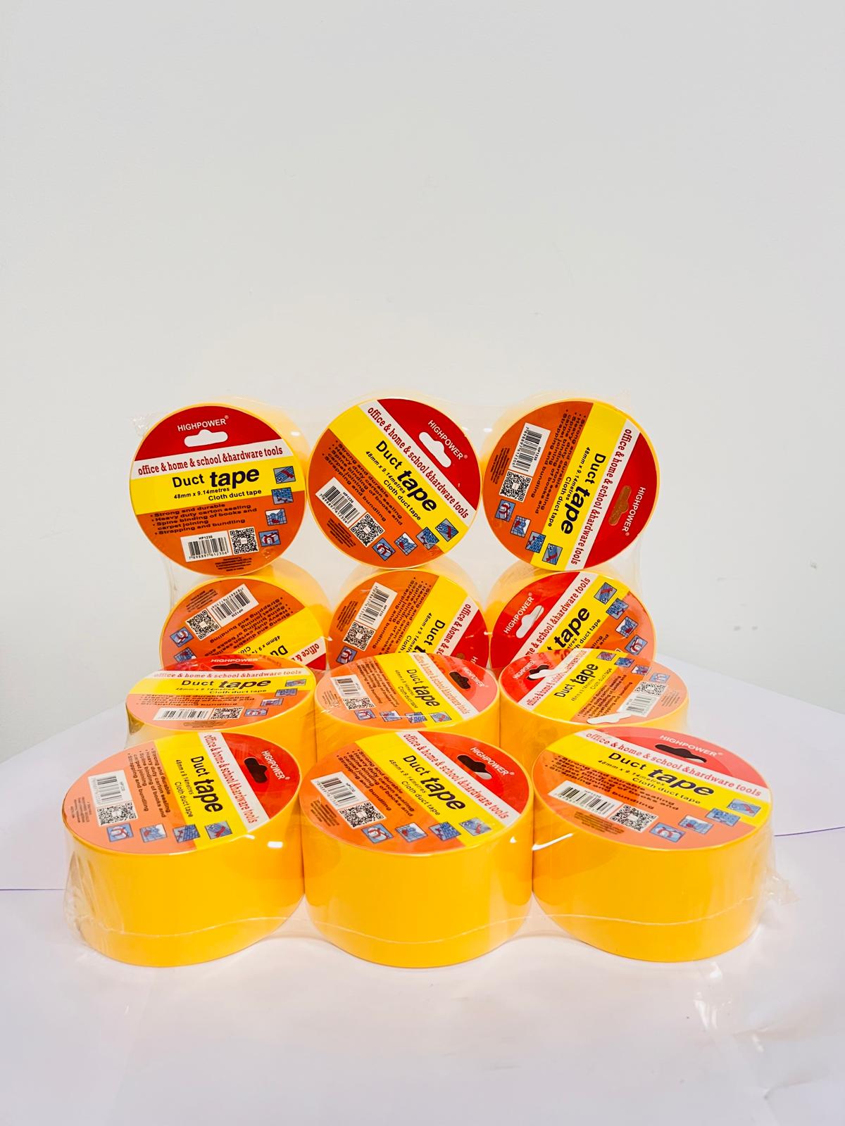 Yellow duct tape, measuring 48mm in width and 9.1 meters in length, is a versatile, multi-purpose, cloth-backed tape known for its strong adhesive properties and high visibility. Welcome to UK Corner Shop.
